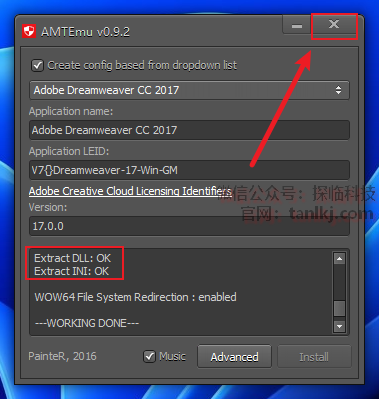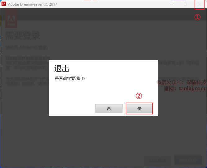①复选框中选择【Adobe Dreamweaver CC 2017】;