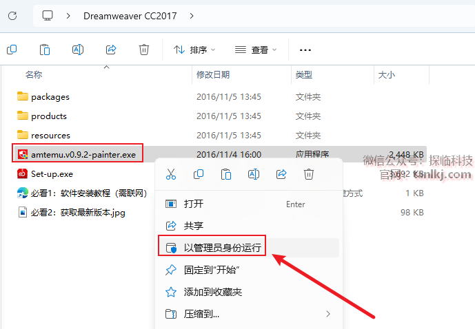 回到之前解压后的文件夹内,右键程序【amtemu.v0.9.2-painter】,点击【以管理员身份运行】。