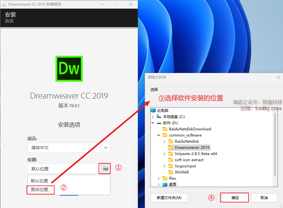 ③选择软件安装的位置,安装路径中不能包含任何中文字符;