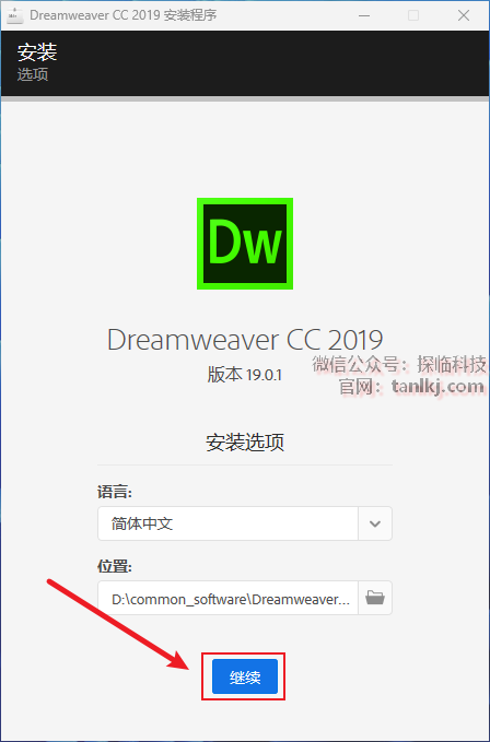 更改软件默认的安装位置,如不需更改,直接点击【继续】即可。