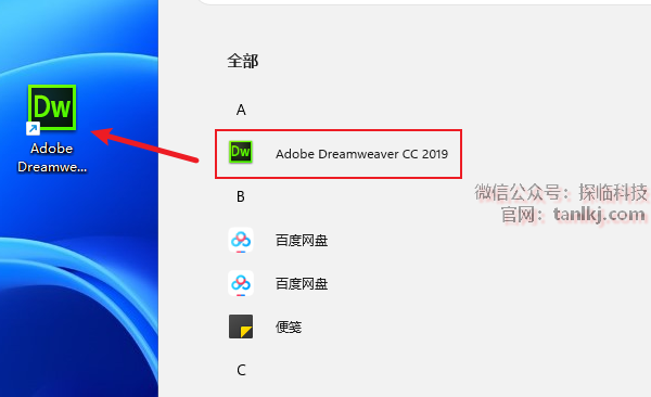 找到软件【Adobe Dreamweaver CC 2019】,并将其拖至桌面创建快捷方式。