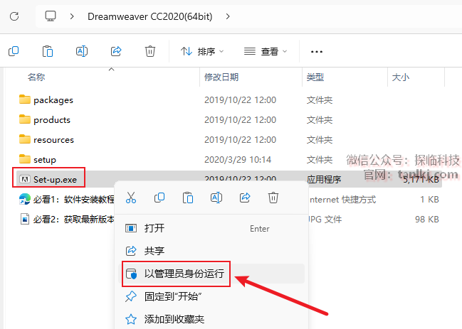 打开解压后的文件件,右键程序【Set-up】,点击【以管理员身份运行】。