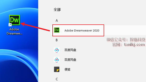 找到软件【Adobe Dreamweaver 2020】,并将其拖至桌面创建快捷方式。