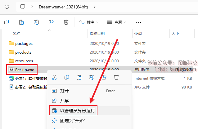 打开解压后的文件件,右键程序【Set-up】,点击【以管理员身份运行】。