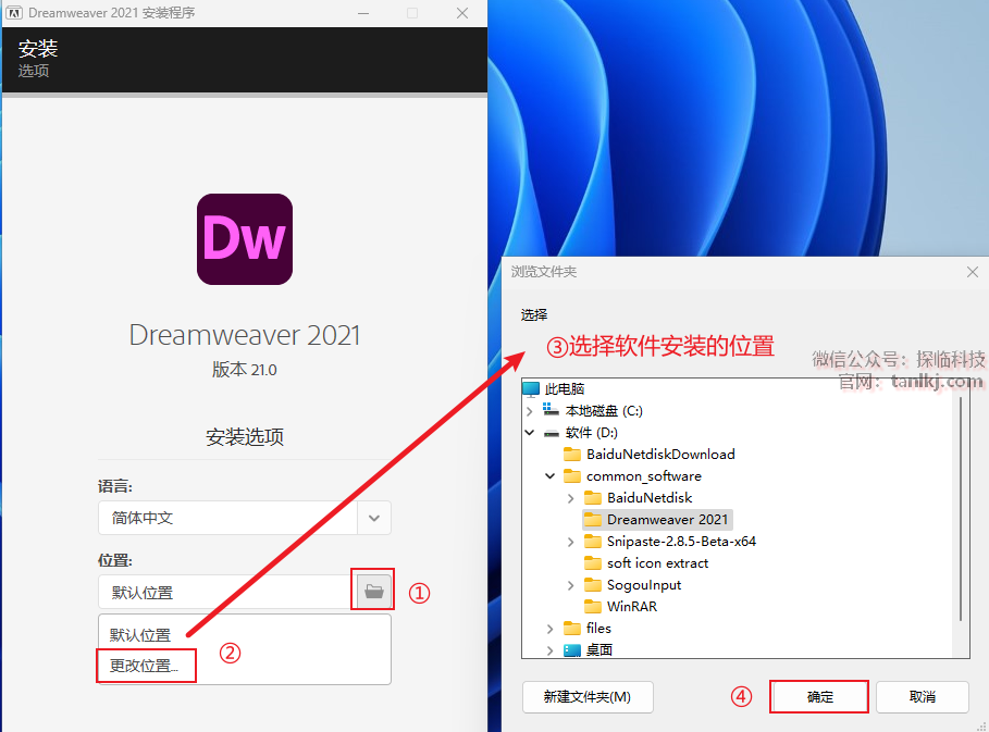 ③选择软件安装的位置,安装路径中不能包含任何中文字符;