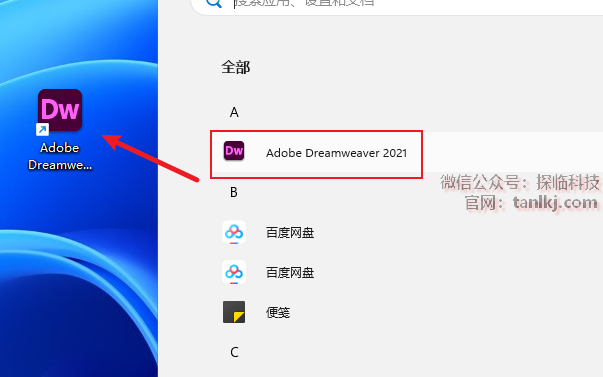 找到软件【Adobe Dreamweaver 2021】,并将其拖至桌面创建快捷方式。