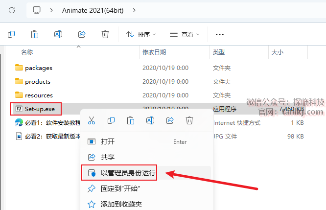 打开解压后的文件件,右键程序【Set-up】,点击【以管理员身份运行】。