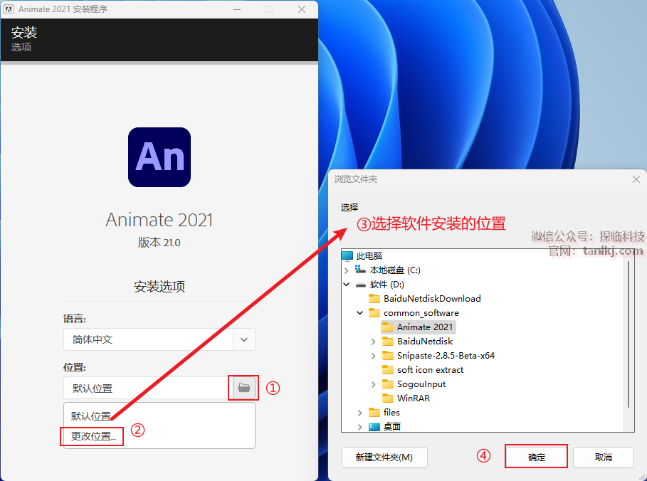 ③选择软件安装的位置,安装路径中不能包含任何中文字符;