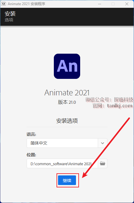 更改软件默认的安装位置,如不需更改,直接点击【继续】即可。