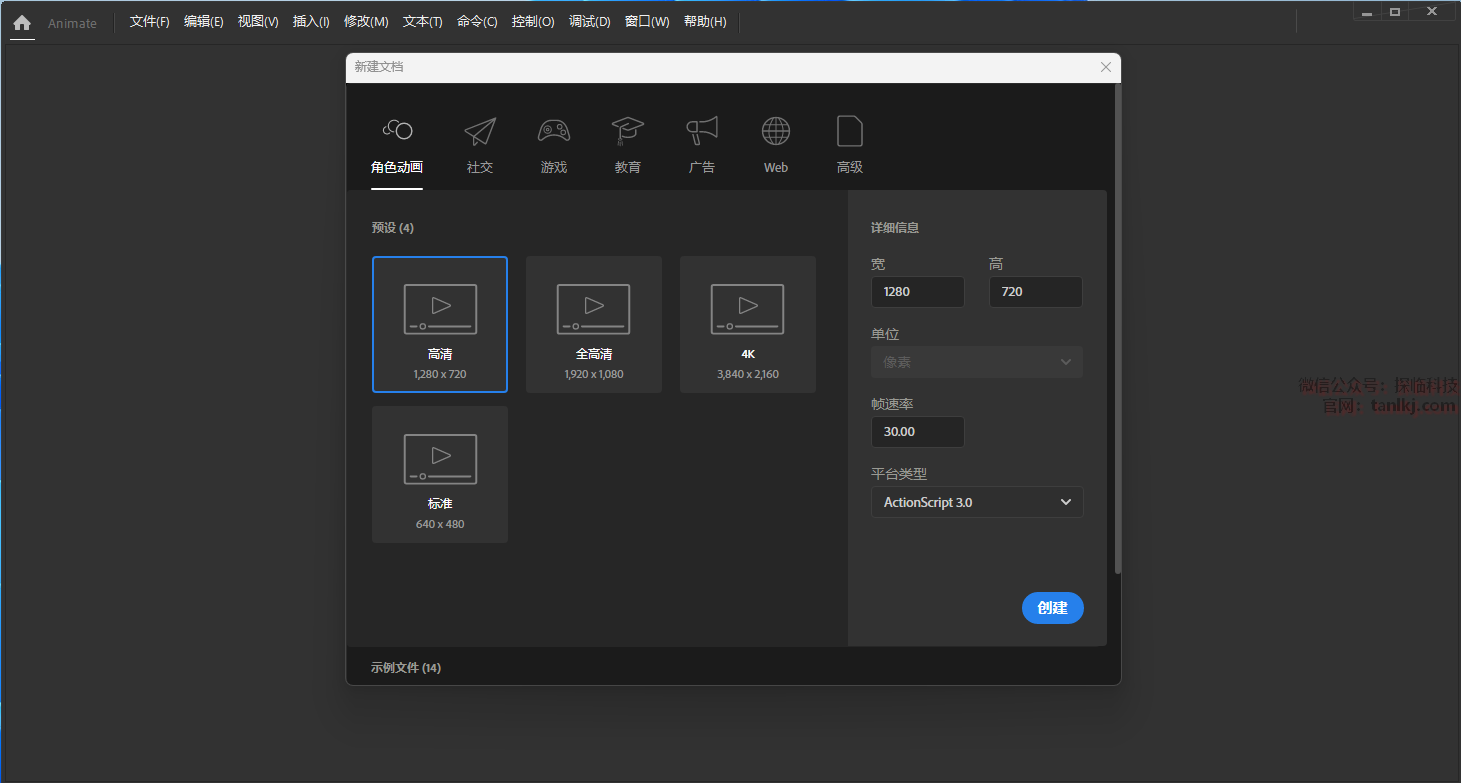 在桌面,双击运行软件【Adobe Animate 2021】。