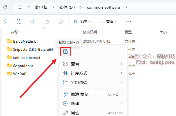 打开软件需要安装的位置,粘贴刚刚复制的文件。