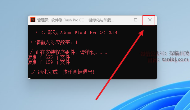 提示:绿化完成后,点击右上角的【X】关闭程序。