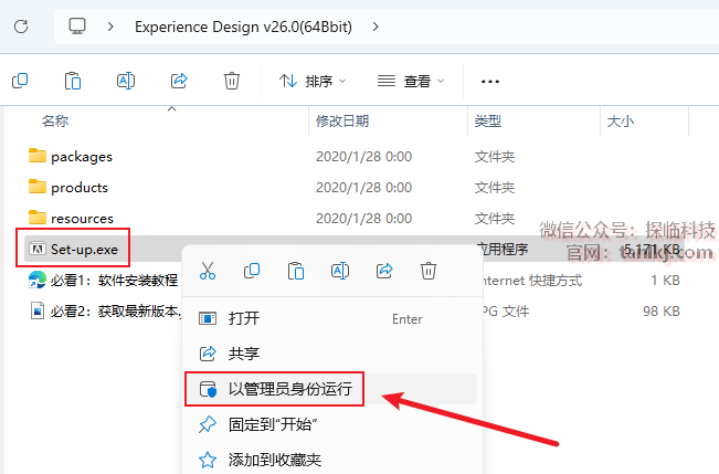 打开解压后的文件件,右键程序【Set-up】,点击【以管理员身份运行】。
