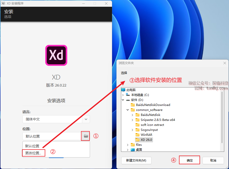 ③选择软件安装的位置,安装路径中不能包含任何中文字符