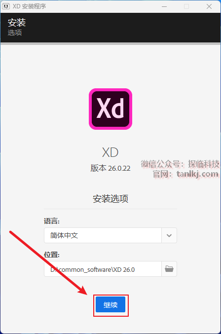 更改软件默认的安装位置,如不需更改,直接点击【继续】即可。