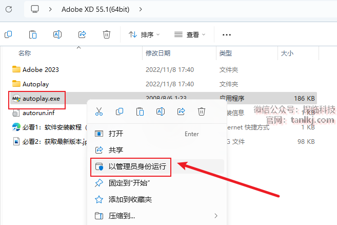打开解压后的文件件,右键程序【autoplay】,点击【以管理员身份运行】。