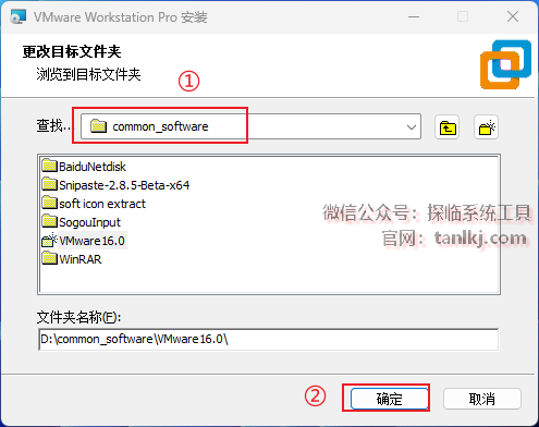 ①查找框中选择软件软件安装的位置,安装路径中不能包含任何中文字符