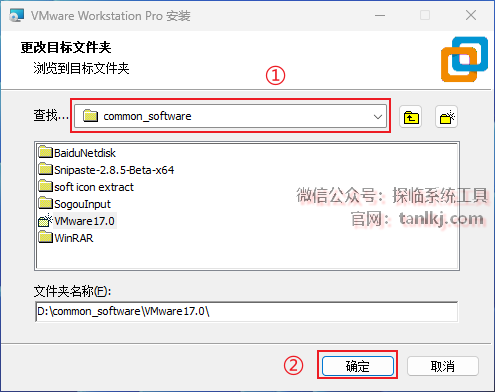 ①查找框中选择软件软件安装的位置,安装路径中不能包含任何中文字符;