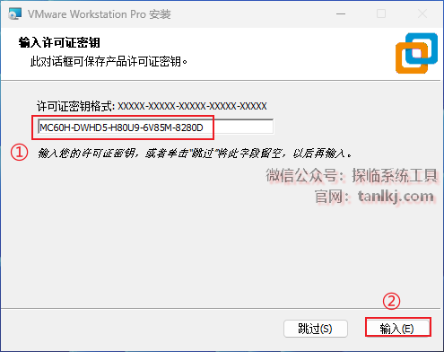 ①输入许可证:MC60H-DWHD5-H80U9-6V85M-8280D