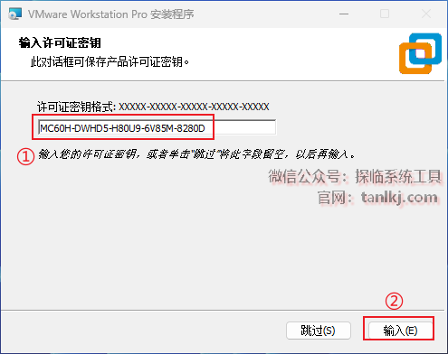 ①输入许可证:MC60H-DWHD5-H80U9-6V85M-8280D