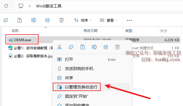 打开解压后的文件夹,右键程序【OEM9】,点击【以管理员身份运行】。
