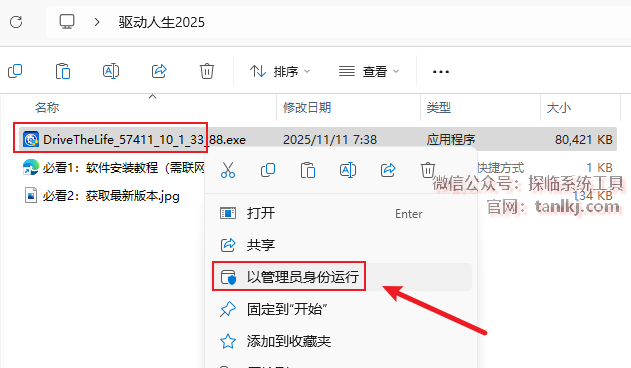 打开解压后的文件夹,右键程序【DriveTheLife…】,点击【以管理员身份运行】。