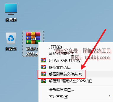 解压下载后的软件包。右键软件包,点击【解压到当前文件夹】(win11系统需先点击【显示更多选项】)。 (未安装解压软件可以点击此处查看:如何安装解压软件?)
