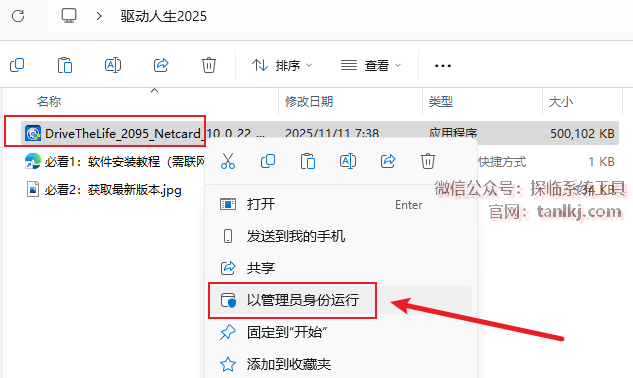 打开解压后的文件夹,右键程序【DriveTheLife…】,点击【以管理员身份运行】。
