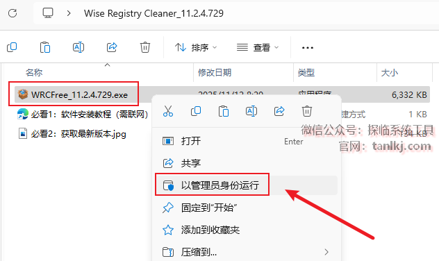 打开解压后的文件夹,右键程序【WRCFree_11.2.4.729】,点击【以管理员身份运行】。
