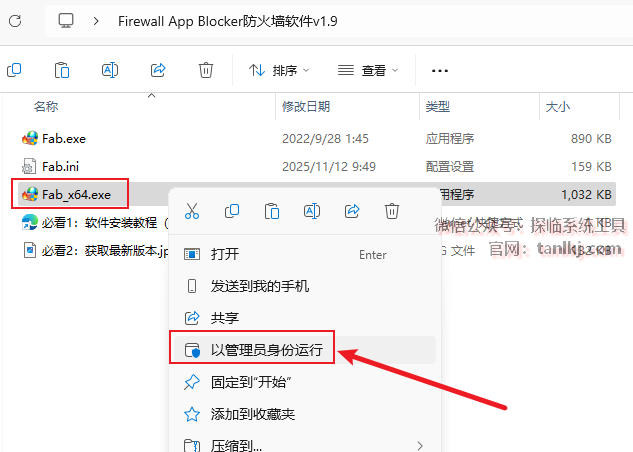打开解压后的文件夹,右键程序【Fab_x64】,点击【以管理员身份运行】。