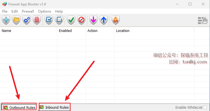 将需要禁止联网的程序分别拖进【Outbound Rules】和【Inbound Rules】即可。