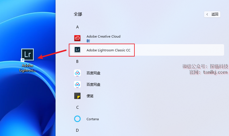 找到软件【Adobe Lightroom Classic CC】,将其拖至桌面创建快捷方式。