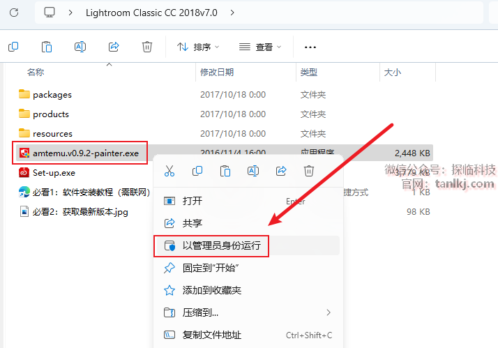 打开之前解压后的文件夹,右键程序【amtemu.v0.9.2-painter】,点击【以管理员身份运行】。(如若没有此程序,请关闭杀毒软件后重新解压)