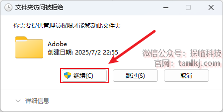 如若提示权限问题,点击【继续】即可。