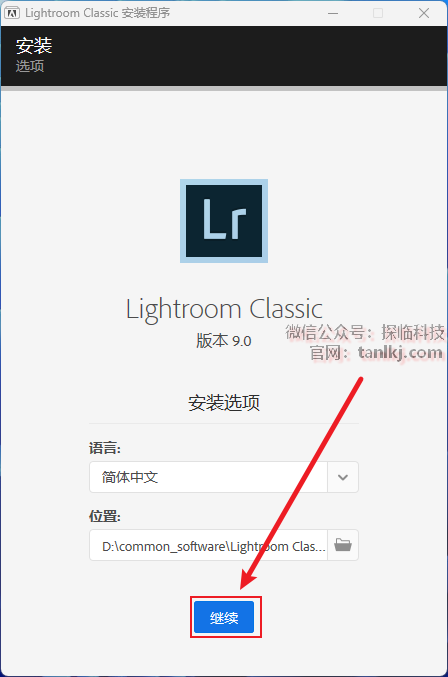 更改软件默认的安装位置,如不需更改,直接点击【继续】即可。