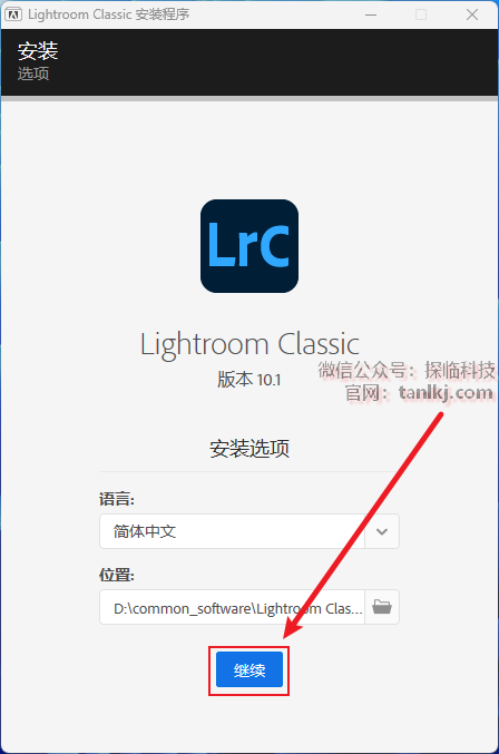 更改软件默认的安装位置,如不需更改,直接点击【继续】即可。