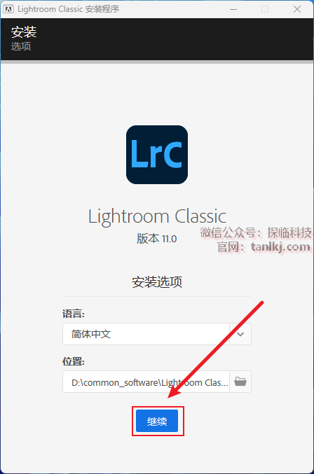 更改软件默认的安装位置,如不需更改,直接点击【继续】即可。
