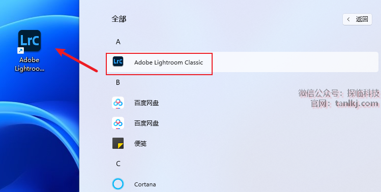 找到软件【Adobe Lightroom Classic】,将其拖至桌面创建快捷方式。