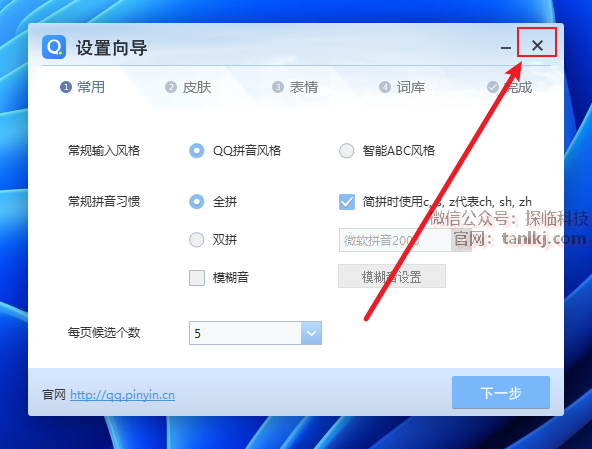 点击右上角的【X】关闭页面。