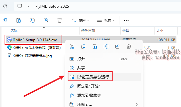 打开解压后的文件夹,右键程序【iFlyME…】,点击【以管理员身份运行】。