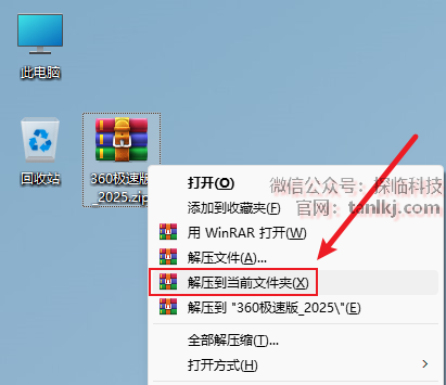 解压下载后的软件包。右键软件包,点击【解压到当前文件夹】(win11系统需先点击【显示更多选项】)。 (未安装解压软件可以点击此处查看:如何安装解压软件?)
