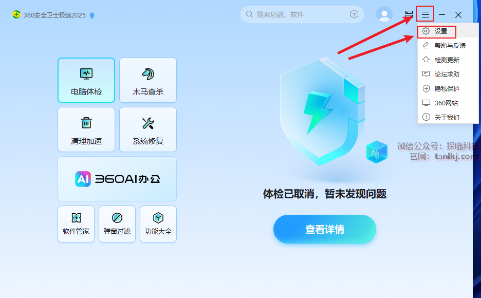点击右上角的三条杠【三】,点击【设置】。