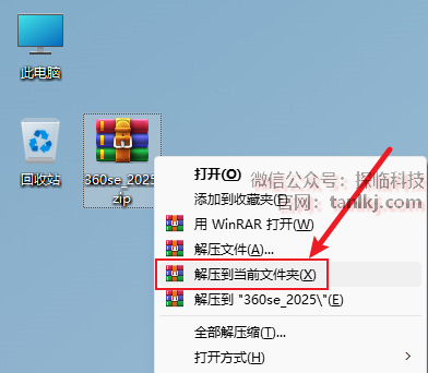 解压下载后的软件包。右键软件包,点击【解压到当前文件夹】(win11系统需先点击【显示更多选项】)。 (未安装解压软件可以点击此处查看:如何安装解压软件?)