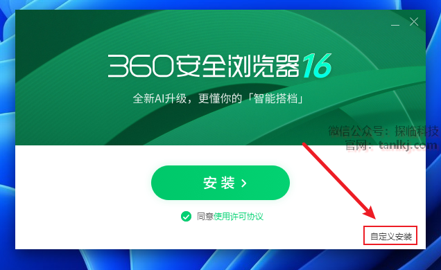 点击【自定义安装】,如不需更改软件默认安装位置,直接点击【安装】即可。