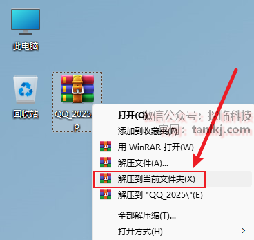 解压下载后的软件包。右键软件包,点击【解压到当前文件夹】(win11系统需先点击【显示更多选项】)。 (未安装解压软件可以点击此处查看:如何安装解压软件?)