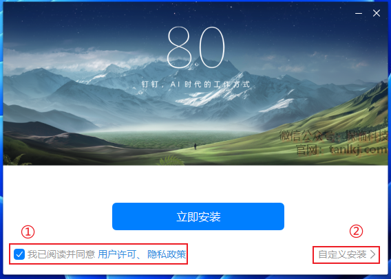 ②点击【自定义安装】(如不需更改软件默认安装位置,点击【立即安装】即可)。