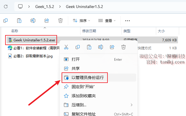 右键程序【Geek Uninstaller1.5.2】,点击【以管理员身份运行】。