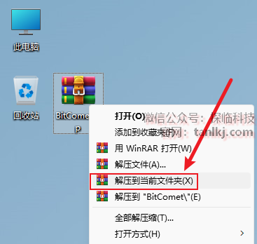 解压下载后的软件包。右键软件包,点击【解压到当前文件夹】(win11系统需先点击【显示更多选项】)。 (未安装解压软件可以点击此处查看:如何安装解压软件?)