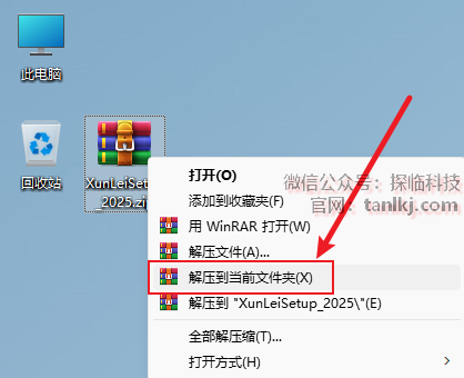 解压下载后的软件包。右键软件包,点击【解压到当前文件夹】(win11系统需先点击【显示更多选项】)。 (未安装解压软件可以点击此处查看:如何安装解压软件?)
