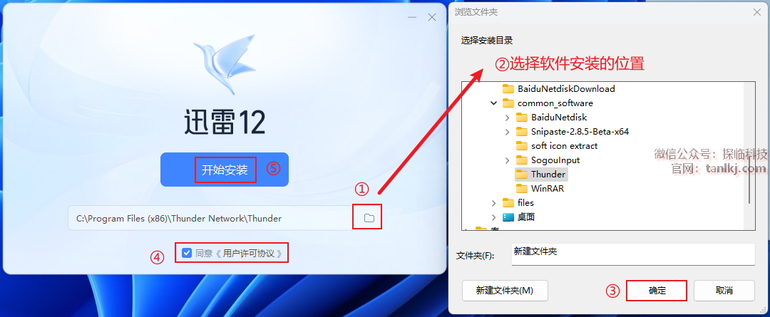 更改软件默认的安装位置,如不需更改,勾选【同意《用户许可协议》】,点击【开始安装】即可。